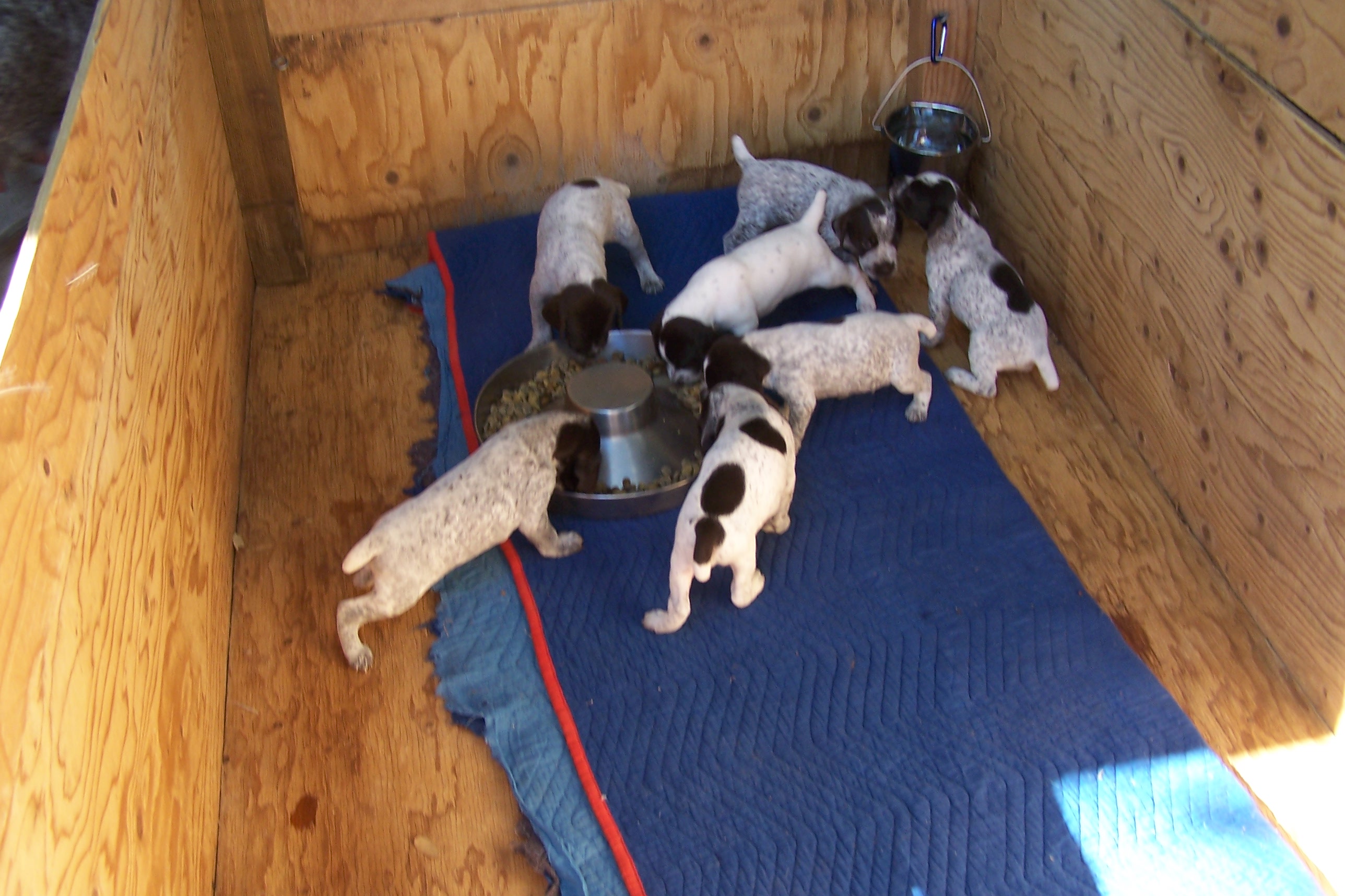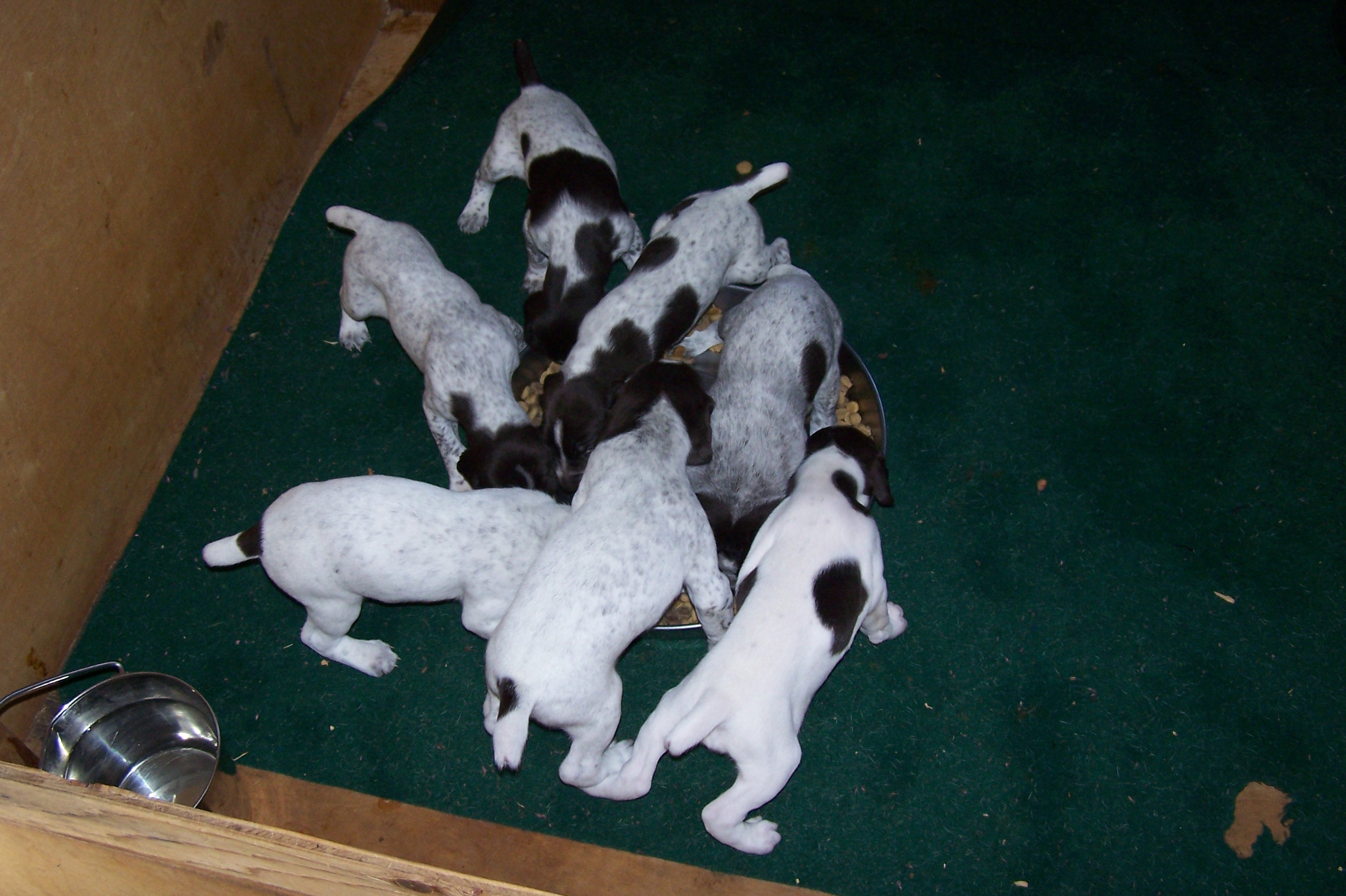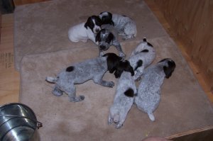 Week 2: The "Perfect" team is thriving! Eyes and ears have started to opem. The trainer is having some difficulty in toe nail trimming, as the guys are powerful! They have learned the "scootch" crawl already and are on the move! Some have found their voices and we have barks ESPECIALLY AT MEAL TIME!Meet...Winter Creek's All Star Perfecto-Cain, All Star Gold Glove-Lucky, All Star MVP-Riley, In The Squat-Buster, Hunter In The Field-Bo, Happy-Tres All Star-Happy & All Star Player, Champ.